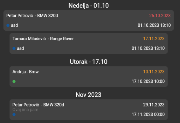 Kompanije pružaju usluge za druga vozila. Ovi korisnici će pored Automobila i Podsetnika imati stranice Zakazani sastanci i Mušterije.
